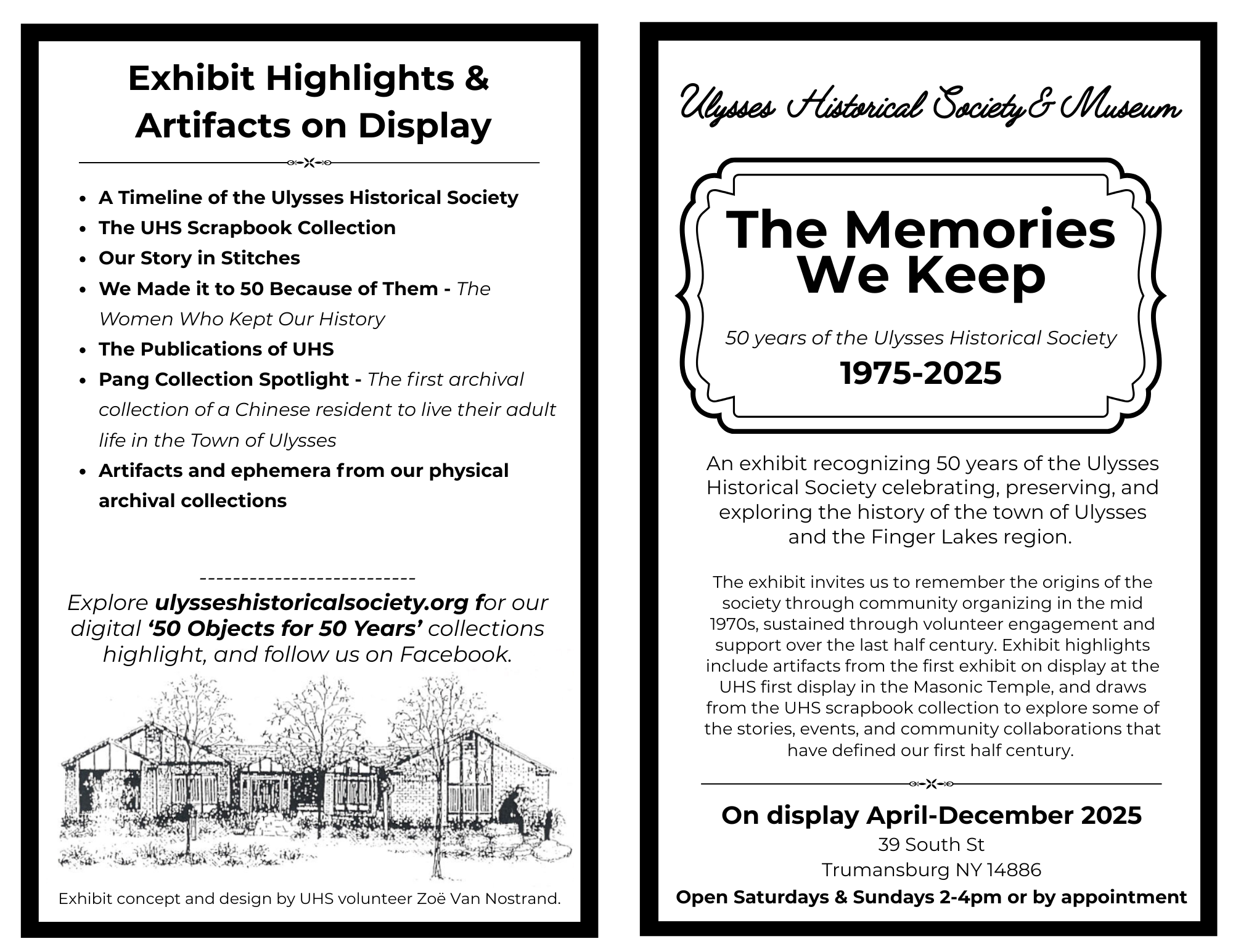 Exhibit: ‘The Memories We Keep - 50 Years of the Ulysses Historical Society - 1975-2025’
