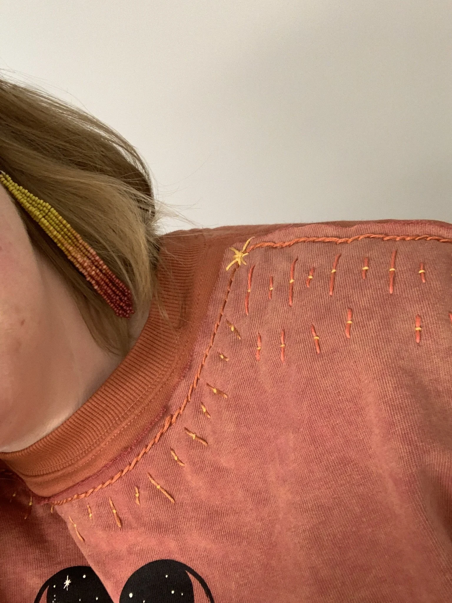 Sashiko patch freehand embellishment by Zoë Van Nostrand. Stitches pictured: running stitch. Fungi patch printed by Seeds not Bombs